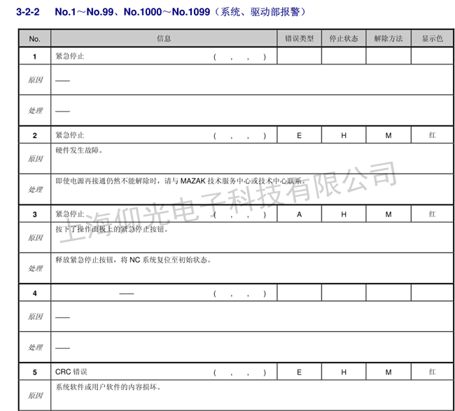 馬扎克數(shù)控系統(tǒng)維修報(bào)警代碼如下: