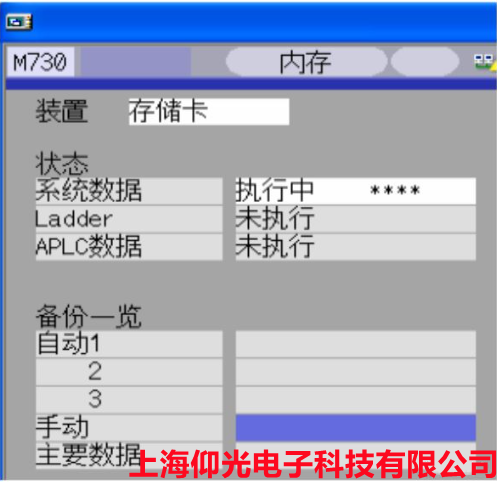 4.選擇完裝置后,按下“備份”→“INPUT”→“Y”,此時屏幕顯示“備份執行中”。
