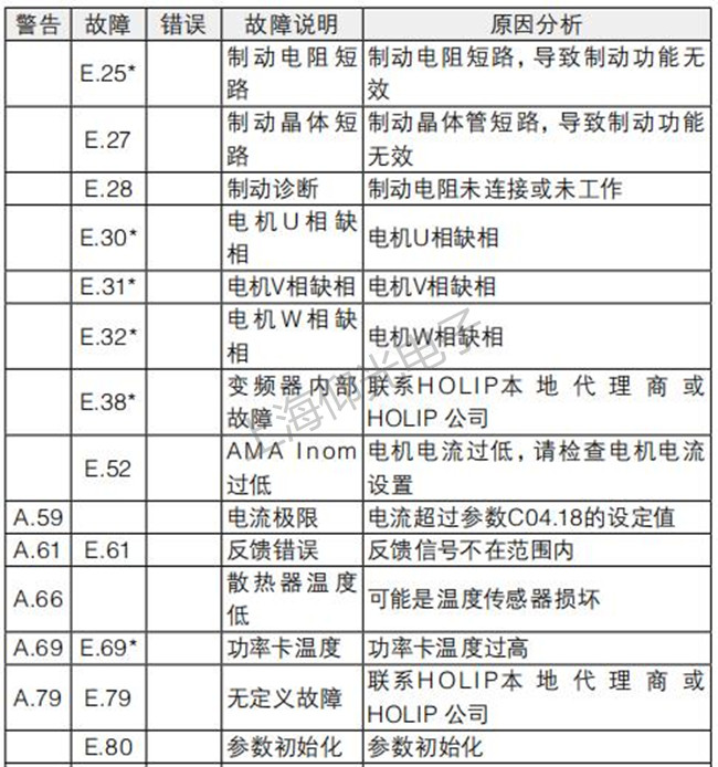 海利普變頻器維修故障代碼一覽表: