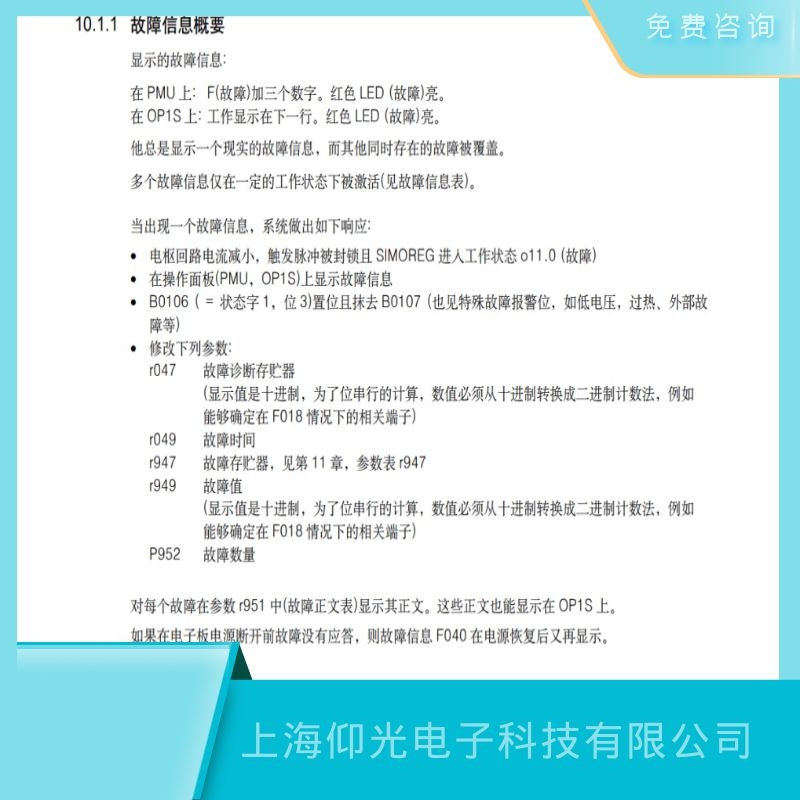 上海仰光電子科技有限公司成立于2011年,是一家專業(yè)從事工業(yè)自動(dòng)化設(shè)備維修、維護(hù)及電氣系統(tǒng)維修改造的高科技公司。主要針對西門子(SIEMENS) ABB維修、包米勒維修,力士樂維修,發(fā)那科維修,貝加萊維修,AB維修,科爾摩根維修,倍福維修,富士維修,安川維修,三菱維修,海德漢維修,穆格維修,發(fā)格維修,普洛菲斯,路斯特維修,倫茨維修,斯德博維修,寶德維修,NUM維修,SEW維修,施耐德(Schneider)等品牌的驅(qū)動(dòng)器,變頻器、伺服電機(jī)、直流調(diào)速器、軟啟動(dòng)器、工控機(jī)、PLC、觸摸屏、數(shù)控系統(tǒng)、單片機(jī)、電路板等各種進(jìn)口工業(yè)儀器設(shè)備,服務(wù)中心配備了百萬備品備件以及完備的診斷檢測儀器和軟件診斷技術(shù),擁有一支技術(shù)精湛、經(jīng)驗(yàn)豐富的技術(shù)團(tuán)隊(duì)。上海仰光電子科技有限公司維修免費(fèi)全國,提供免費(fèi)檢測,免費(fèi)咨詢,同一故障六個(gè)月質(zhì)保,修不好不收費(fèi)用,如有任何故障可隨時(shí)聯(lián)系我們,上海仰光電子科技有限公司工程部溫馨提示:如果設(shè)備出現(xiàn)報(bào)警或者損壞,不是專業(yè)技術(shù)人員請勿私自拆卸,以防帶來安全隱患以及給設(shè)備造成二次傷害.上海仰光電子-您身邊的設(shè)備維修維護(hù)專員。