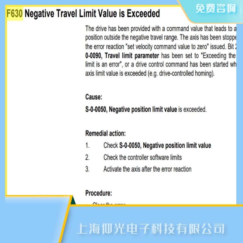 S-0-0050, 超出負(fù)位置限制值。