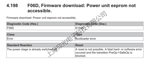 倍福伺服驅動器報警F06D維修 F06D固件下載:電源單元 EEPROM無法訪問